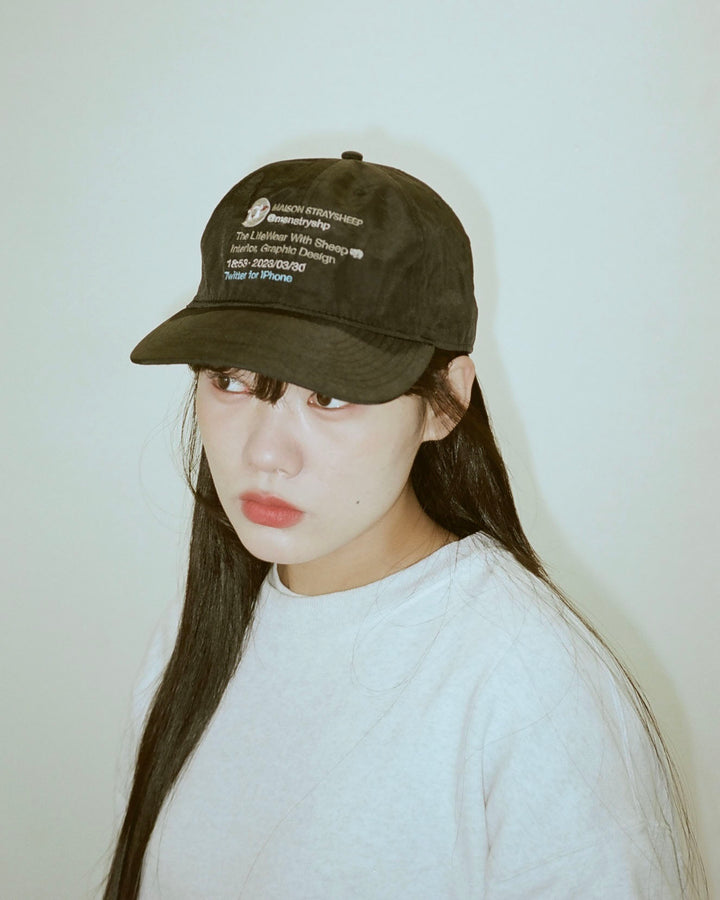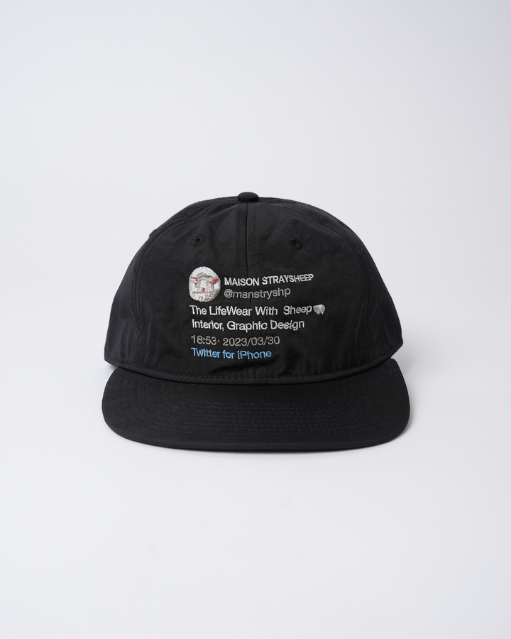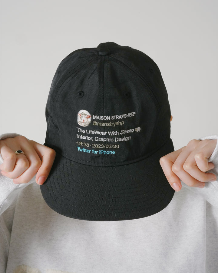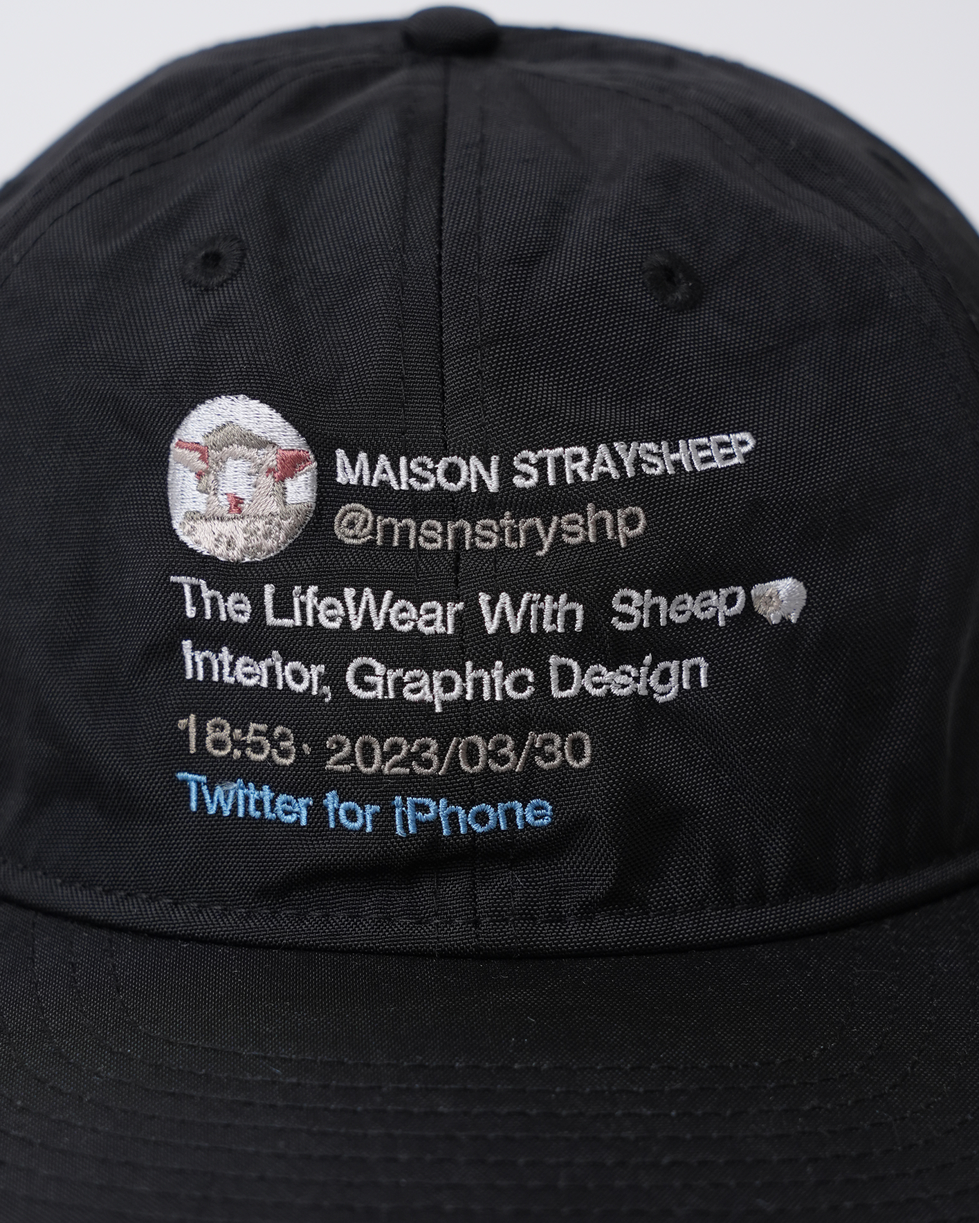 MAISON STRAYSHEEPの実際のTweetを元に刺繍を施されたナイロンキャップです。Xで使用可能な羊の絵文字も再現しました。