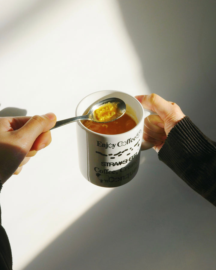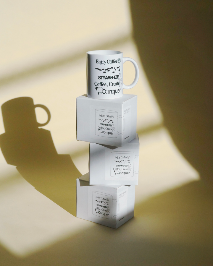 日常で使えるMAISON STRAYSHEEPのマグカップです。デザイナーが仕事の合間に描いた羊のスケッチをグラフィックに落とし込みました。
