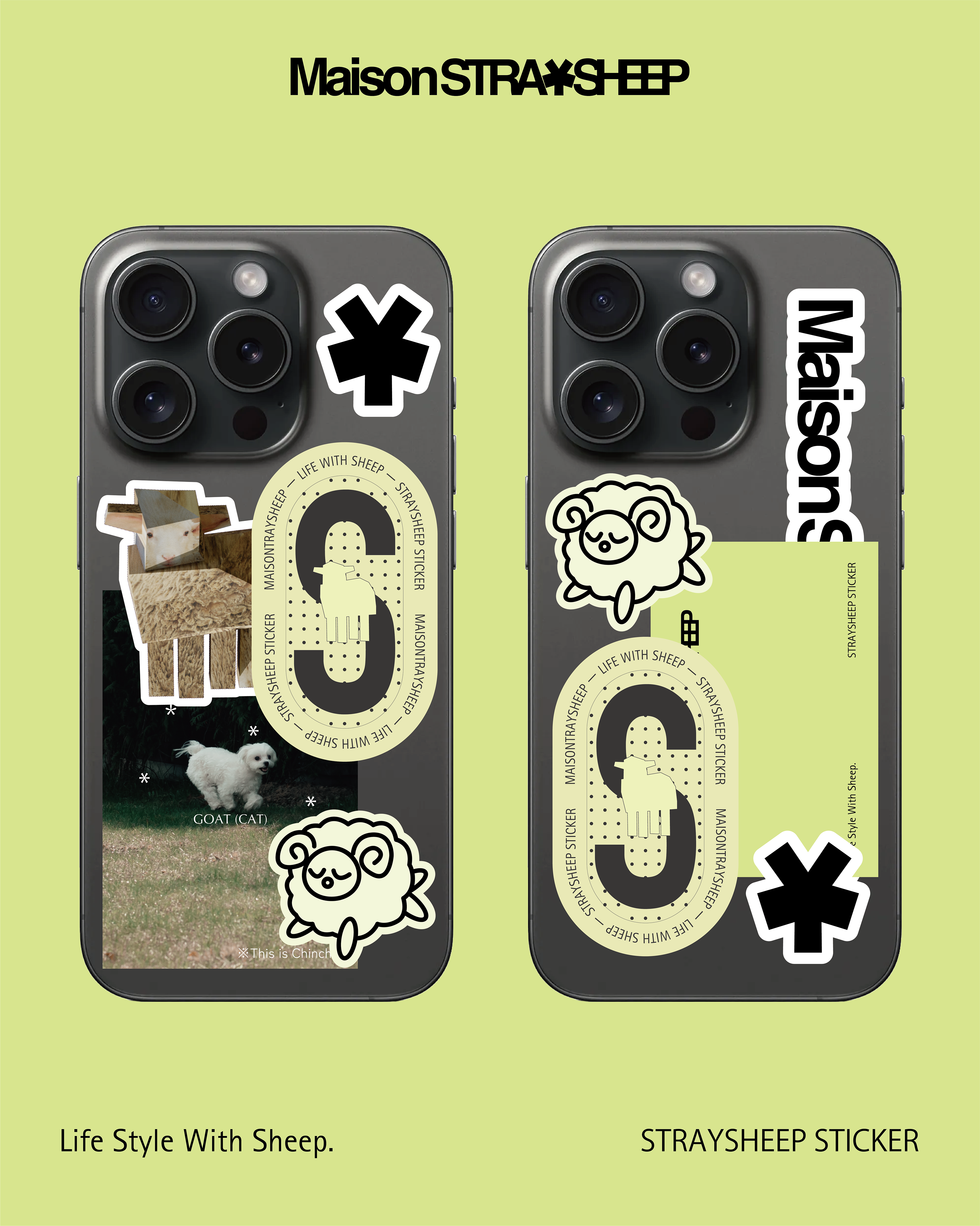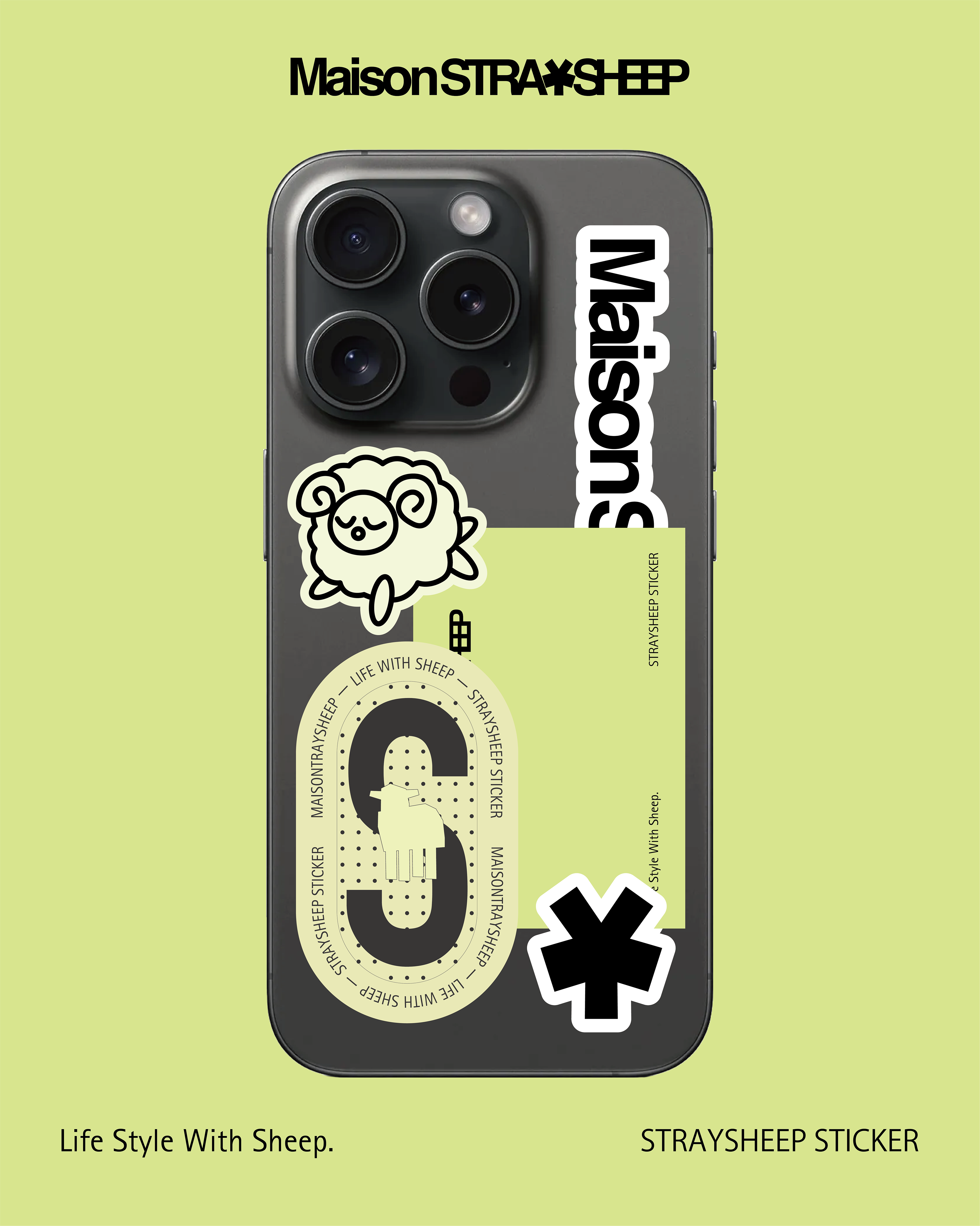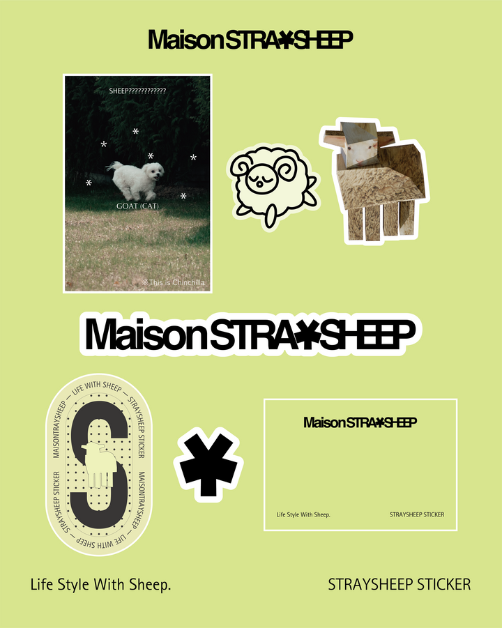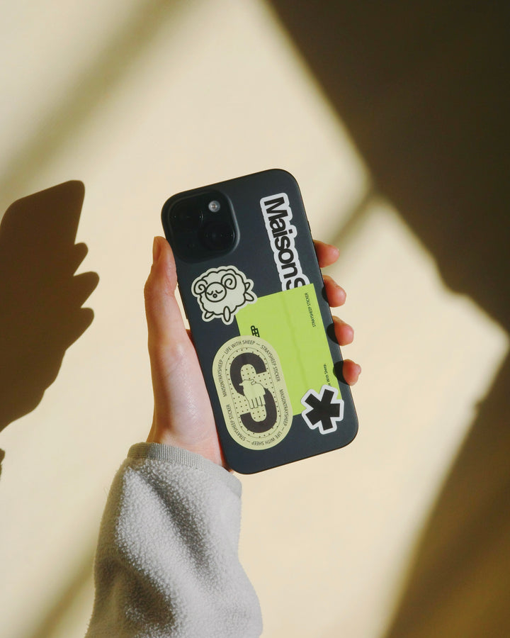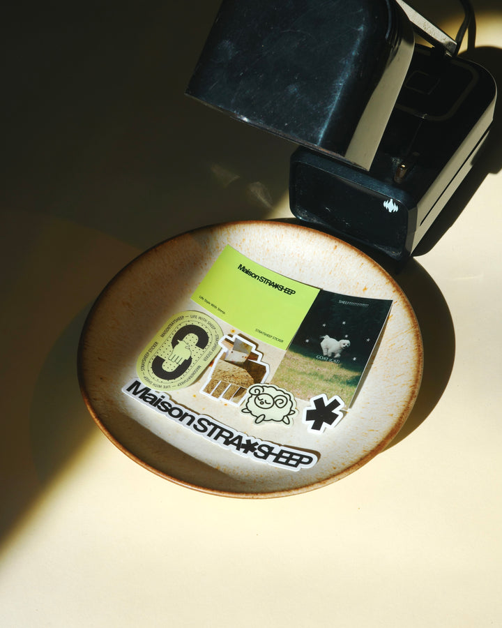 STRAYSHEEPの世界をじこめたステッカー。スマートフォンに収まるサイズの中でレイヤリングを楽しめるようデザインしました。