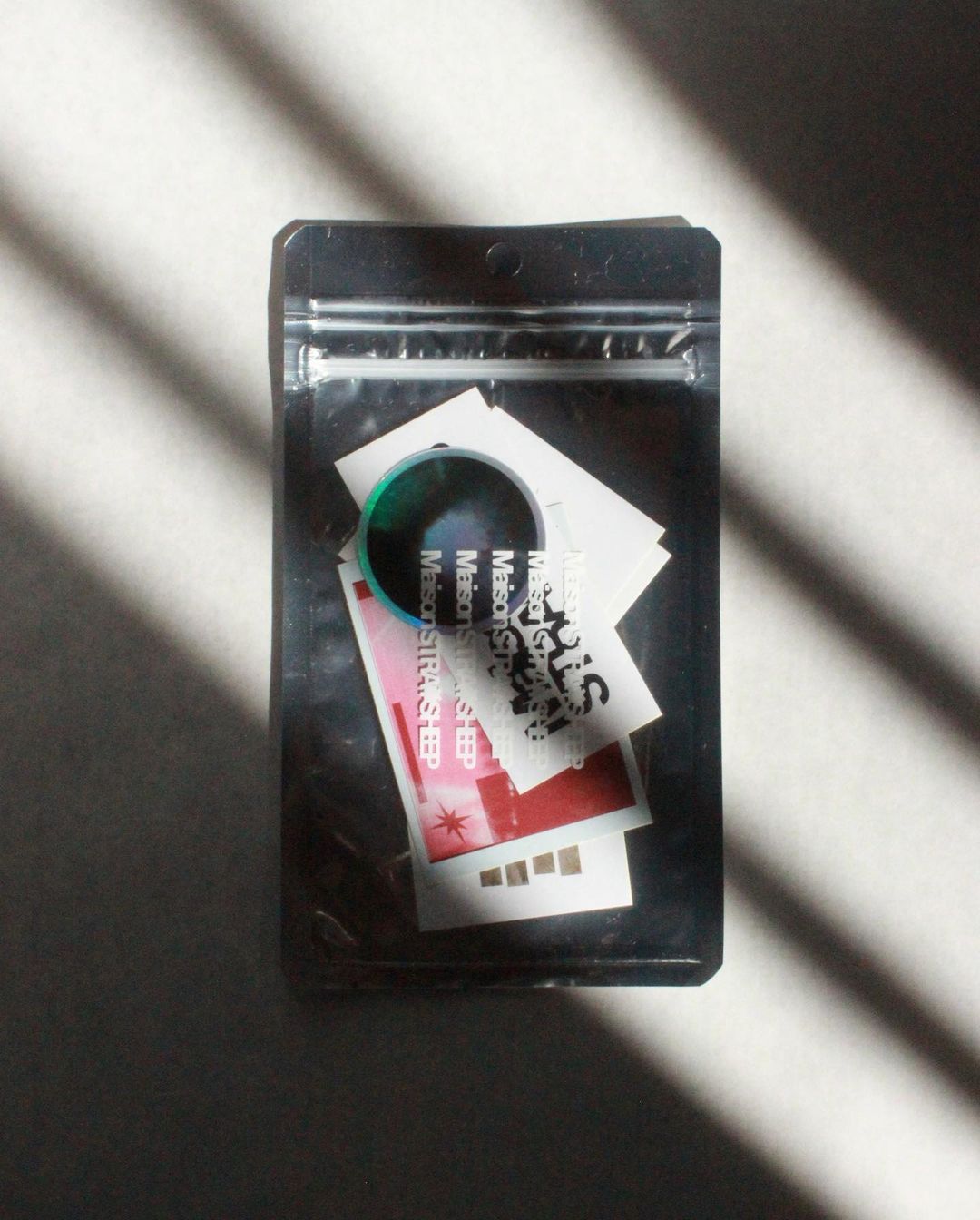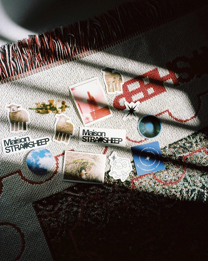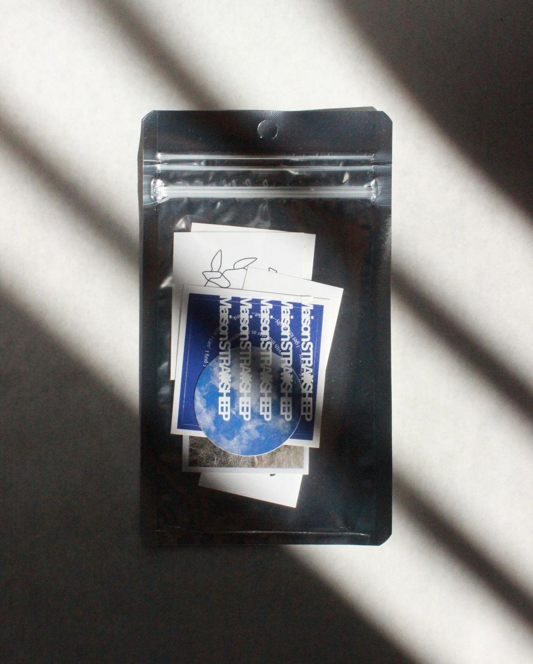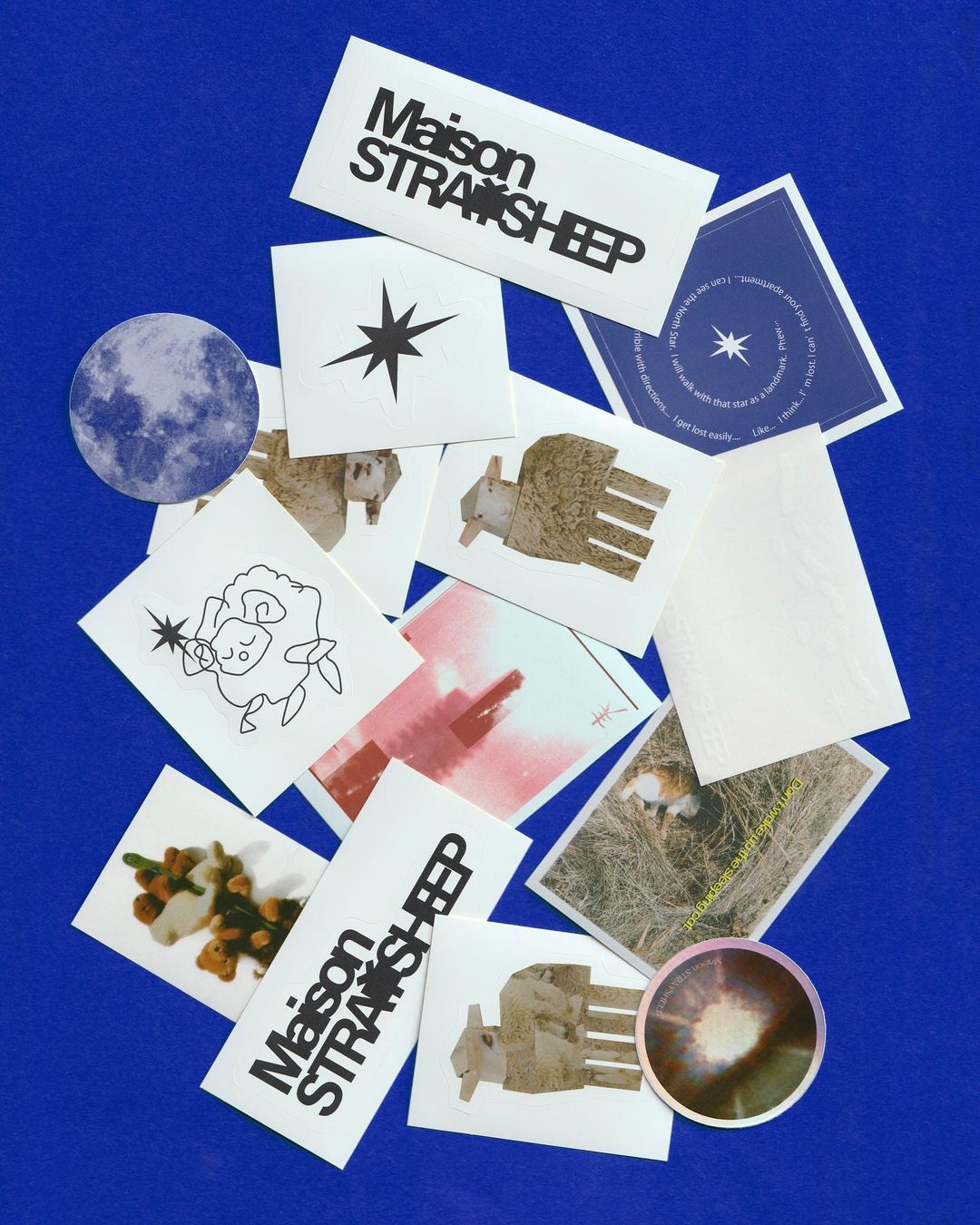 STRAYSHEEP世界をじこめたステッカー。スマートフォンに収まるサイズの中でレイヤリングを楽しめるようデザインしました。REDとBLUEの2種類よりお選びいただけます。ステッカーはそれぞれ7枚入り。