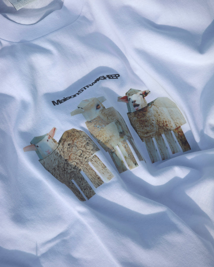 MAISON STRAYSHEEPの最もベーシックなTシャツ。3Dソフトで製作されたローポリな羊が目を惹く一着です。